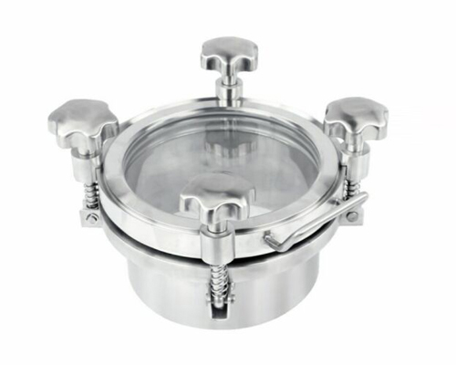 該壓力型人孔主要應用在食品,釀酒,飲料,制藥等工業領域壓力容器上。 ◎外開式人孔蓋子 ◎不銹鋼手輪 ◎帶法蘭式窺視鏡 ◎由任式窺視鏡 ◎表面:Ra0.8um-0...